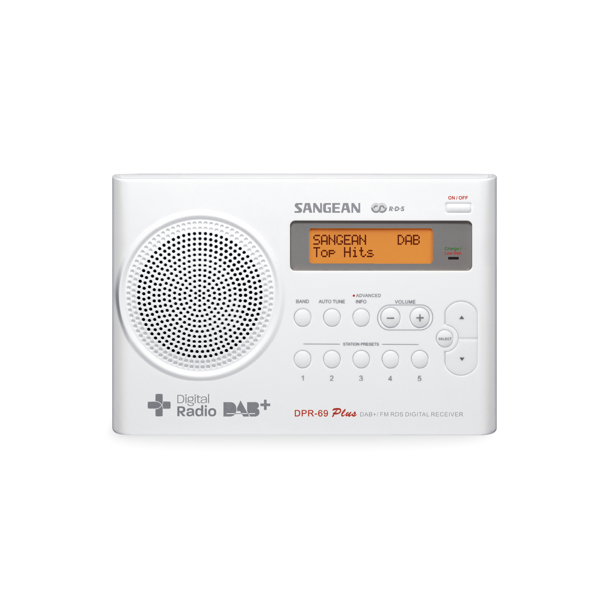 Радиоприемник Sangean DPR-69+ цвет белый Если вам хочется немного развлечься, DPR-69+ — отличный вариант! Вы можете взять это радио DAB+ / FM с собой в поход, в парк или в сад. Не беспокойтесь о том, что случайно пропустите любимую песню, благодаря переключателю блокировки, который предотвращает нежелательное использование кнопок. Сохраняйте свои любимые радиостанции с помощью 5 предустановок на DAB+ и FM, чтобы переключаться между ними за считанные секунды! Когда батарейки разрядятся, зарядите их с помощью адаптера переменного тока, и вы снова будете готовы к работе. Нет перезаряжаемых батареек? Не проблема — подойдут и обычные батарейки! Размеры: Ширина x Высота x Глубина (мм ) 161,5 x 107 x 39 Вес (г ) 348 Интерфейс ввода-вывода Наушники постоянного тока Аксессуары Адаптер Питания (в комплекте) Конфигурация динамика 2 1/5 дюйма Усилитель Класс D Импеданс 8 ом Выходная мощность 0,5 Вт Выходная мощность наушников 5 МВт x 2 Источник питания Постоянный ток 7,5 В / 0,8 А Аккумулятор / Резервная батарея 4 x 1,5 В (AA-LR6)